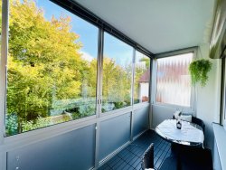 Eine verglaste Süd-Loggia sorgt durch lange Sonnenstunden für Entspannung im eigenen Heim und für Romantik durch den eingewachsenen, schönen Blick.