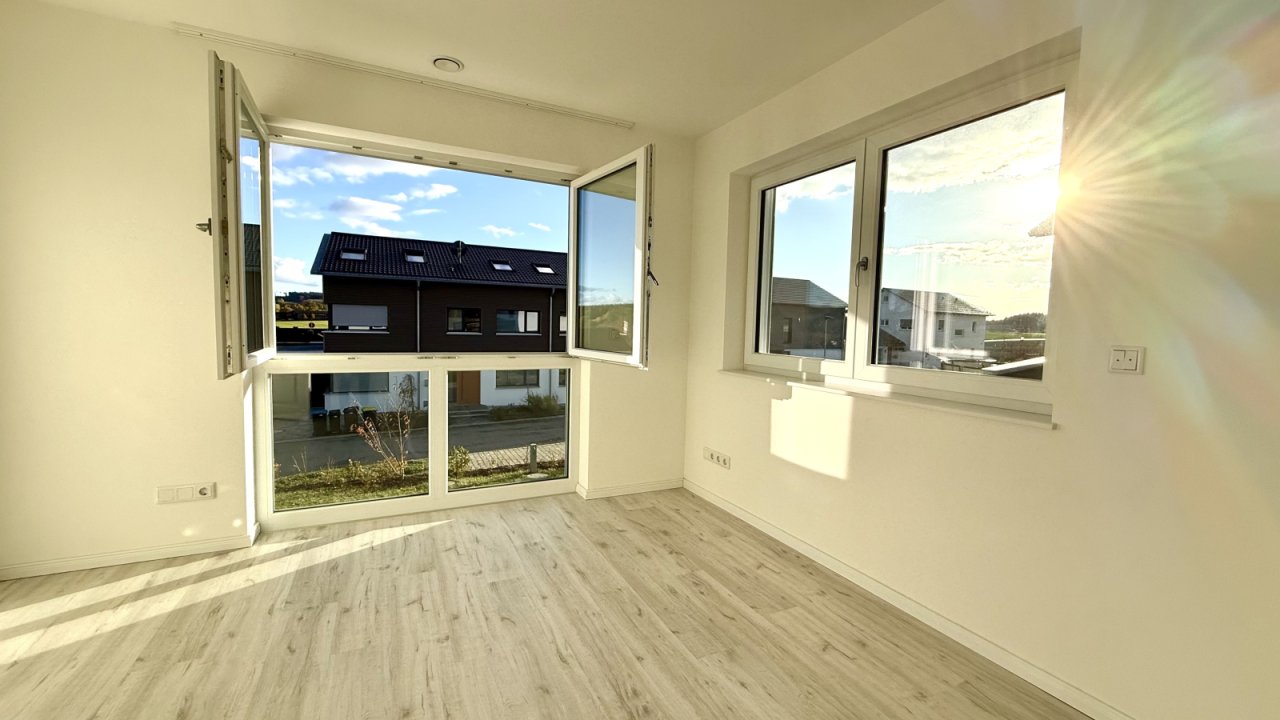 Bodentiefe Fenster sorgen für viel Tageslicht und gewähren direkten Zugang zur eigenen Terrasse und sonnigem Garten – perfekt für entspannte Stunden im Freien. Ein zusätzlicher Raum auf dieser Etage eignet sich ideal als Homeoffice, Gäste- oder Spielzimmer für die kleinen der Familie.
