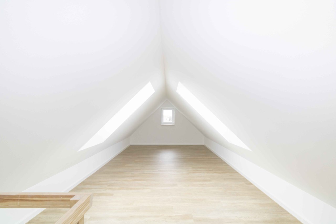 Die Dachgeschosswohnungen sind über eine Auszugstreppe mit einem ausgebauten Dachspitz verbunden, der praktischen zusätzlichen Stauraum bietet.