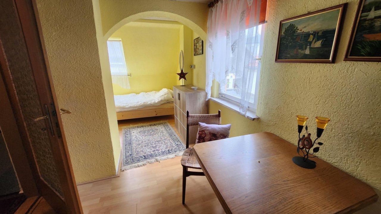 Im Nebengebäude befindet sich zusätzlich eine kleine Einliegerwohnung mit einem Zimmer sowie Badezimmer und direktem Zugang zum Garten.
