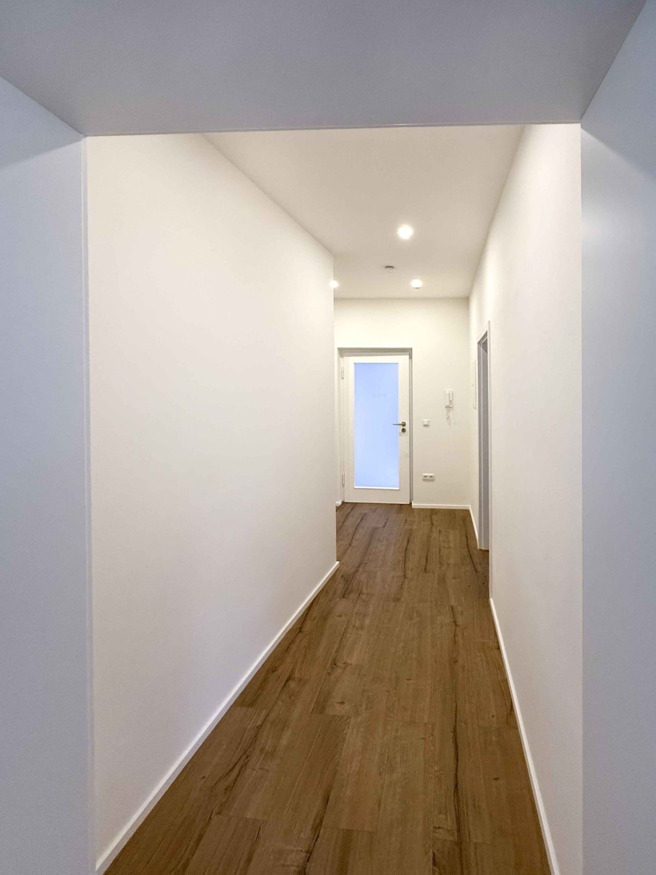 Ein langer Flur verbindet die Räume und rundet das stimmige Gesamtbild dieser attraktiven Innenstadtwohnung ab.