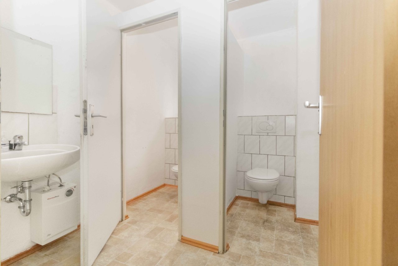 Ggf. könnte das Objekt auch in zwei Einheiten aufgeteilt werden, da es über drei separate Zugänge verfügt: eine Haupteingangstüre, einen Zugang über das Treppenhaus sowie eine Türe vom Hausweg in Richtung Garten (Wohnen/Arbeiten).
