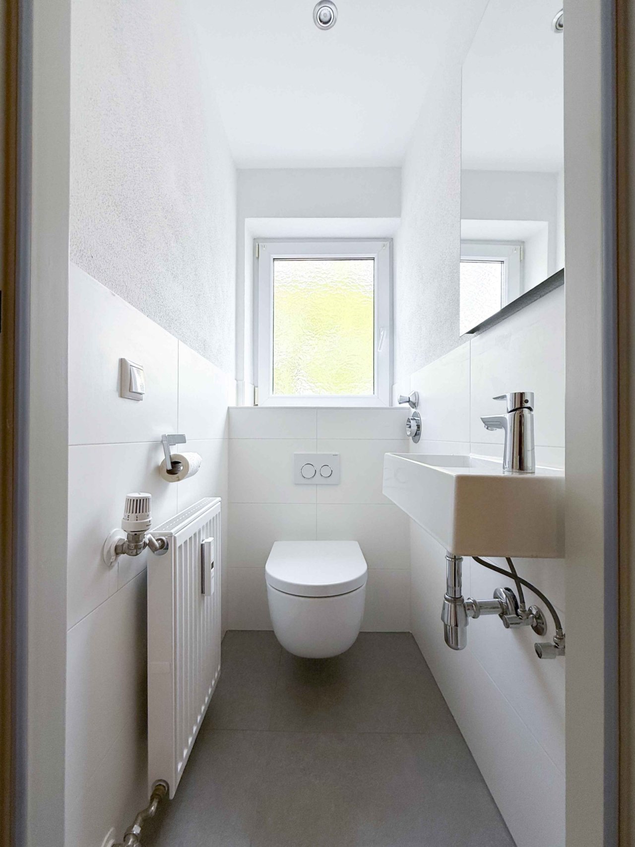 Das Tageslichtbadezimmer ist mit einer Badewanne und einem Waschmaschinenstellplatz ausgestattet und lädt zum Entspannen nach einem langen Tag ein. Ein separates Gäste-WC sorgt zusätzlich für Komfort im Alltag. Der praktische Kellerabteil bietet wertvollen Stauraum und rundet das Raumangebot sinnvoll ab.